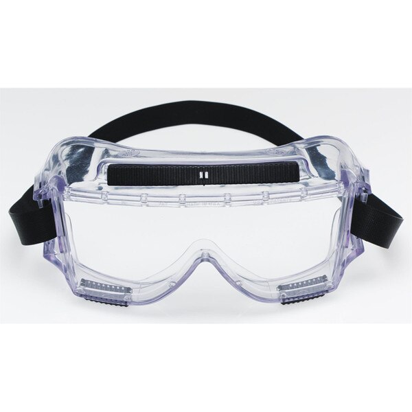The durable Centurion vented safety impact goggle is reliable protective eyewear, featuring a wide-angle wraparound frame design with distinct "side-to-side" peripheral vision and a large lens opening to accommodate prescription and safety eyewear. The Centurion safety splash goggle is a reliable choice in protective eyewear. Its stable, sturdy construction will help protect your eyes. Includes wide nasal flare for added comfort and a indirect venting system to minimize fogging. (bul) Clear anti-fog lens. (bul) 10 safety goggles per case. (bul) Polycarbonate lens absorbs 99.9% UV. (bul) Meets the requirements of CSA Z94.3-2007 and the High Impact Requirements of ANSI Z87.1-2003.